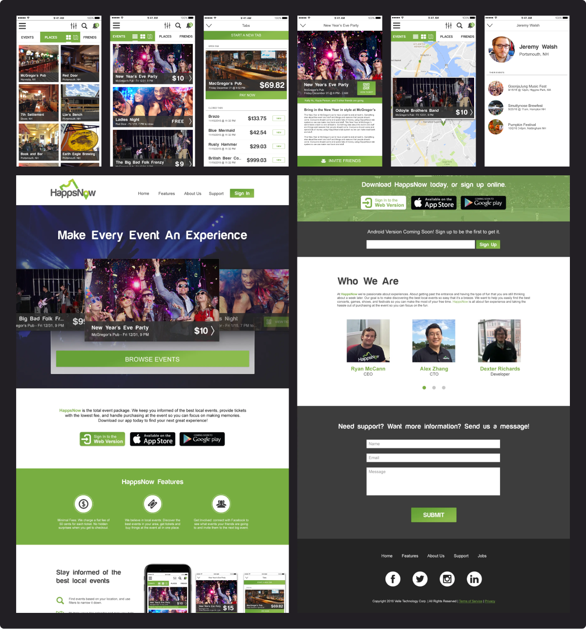 HappsNow was an event ticketing startup trying to break into a saturated market with an approach that simplified the process and made it more engaging for younger users. I was brought it early in the process when all they had was a simple prototype.